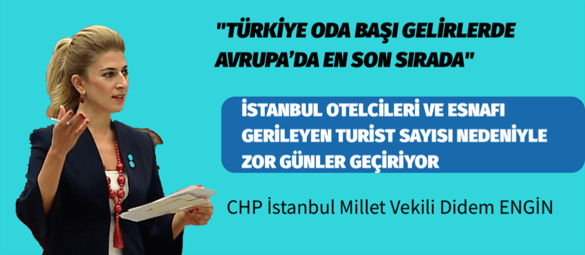 CHP İstanbul Milletvekili Didem ENGİN İstanbul’un güncel turizm verilerini değerlendirdi. Didem ENGİN “İki kıtayı birleştiren, imparatorluklara başkentlik yapmış, coğrafi, tarihi ve kültürel birikimi ile turizm açısından benzersiz bir konumda olan İstanbul’un her sokağı tarih kokar, her köşesi yerli ve yabancı turistler için heyecan vericidir. Ancak ne yazık ki dünyanın en güzel şehri İstanbul, AKP’nin son yıllardaki sorunlu dış politikası nedeniyle turizmde zor günler geçiriyor. Son birkaç yıldır, hem gelen yabancı ziyaretçi sayısı hem de turizm gelirleri açısından İstanbul Avrupa’daki diğer kentleri çok geriden takip ediyor” dedi.