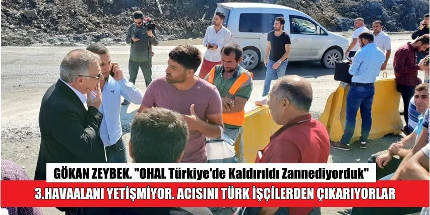 CHP Millet Vekili Gökan Zeybek : Ağustos ayından TBMM de OHAL kaldıma ile ilgili görüşmeler yaptık ve 2 yıldır uygulanan OHAL Türkiye de kaldırıldı zannediyorduk, oysa gördükki Cumartesi anneleri direnişinde, işçi eylemlerinin olduğu yerlerde Valiliğin bir kararnamesiyle heryer OHAL bölgesi ilan ediliyor, TBMM üyesi bir millet vekili olarak bugün havalimanı inşaatına Jandarmanın, valiliğin koymuş olduğu girilemez kuralı nedeniylede içeriye sokulmadım.