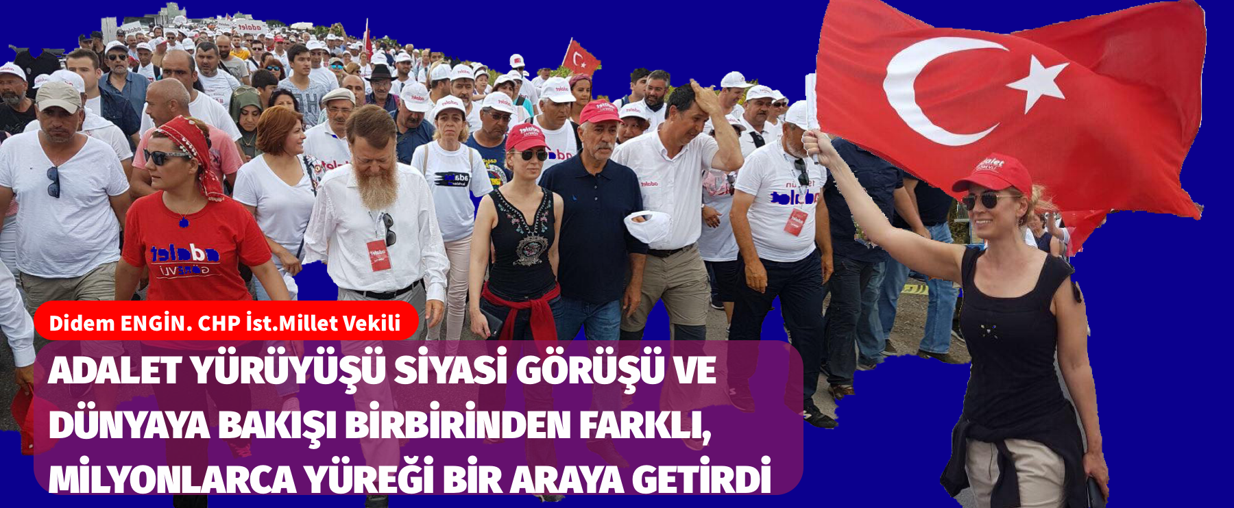 “15 Haziran’da başladığımız ve halkımızın büyük bir coşkuyla eşlik ettiği Adalet Yürüyüşü’müzü 9 Temmuz’da, İstanbul’un gördüğü en büyük mitinglerden biriyle taçlandırdık” diyen Didem ENGİN, “Sayıları milyonları aşan vatandaşlarımızla el ele, omuz omuza, gönül gönüle, ülkemiz ve geleceğimiz için ‘Hak, Hukuk, Adalet’ sloganıyla, hukuk devleti talebimizi dile getirdik” diye konuştu.