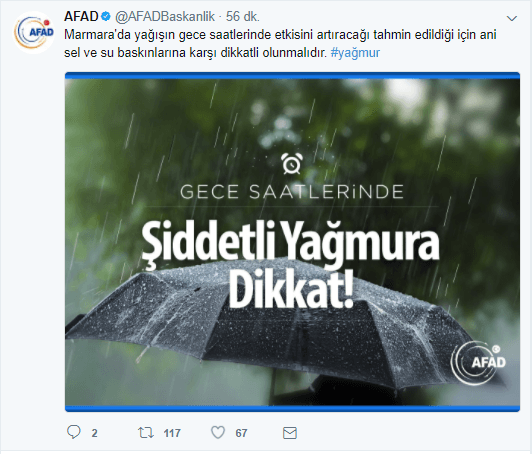 AFAD resmi Twitter hesabından yapılan açıklama şöyle;