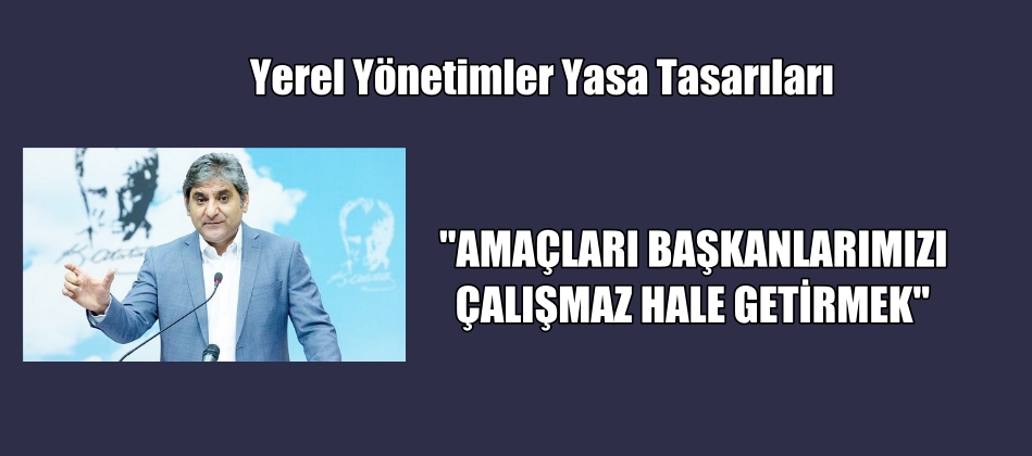 Aykut Erdoğdu “Amaçları büyükşehir belediye başkanlarımızı çalışamaz hale getirmek, başarısız kılmaktır. Ama büyükşehir belediye başkanlarımızı engellemek, halkı da hizmetten mahrum bırakmak demektir. Bununla da kalmıyorlar, aynı zamanda Yerel Yönetimler Yasa Tasarıları ile de halkımızın seçtiği, bu yetkilerle seçtiği büyükşehir belediye başkanlarımıza bir tür kayyum atama, bir tür darbe yapma, bir tür çalışamaz hale getirme çabalarıyla ne yazık ki demokratik iradeye büyük saygısızlık ediyorlar.”