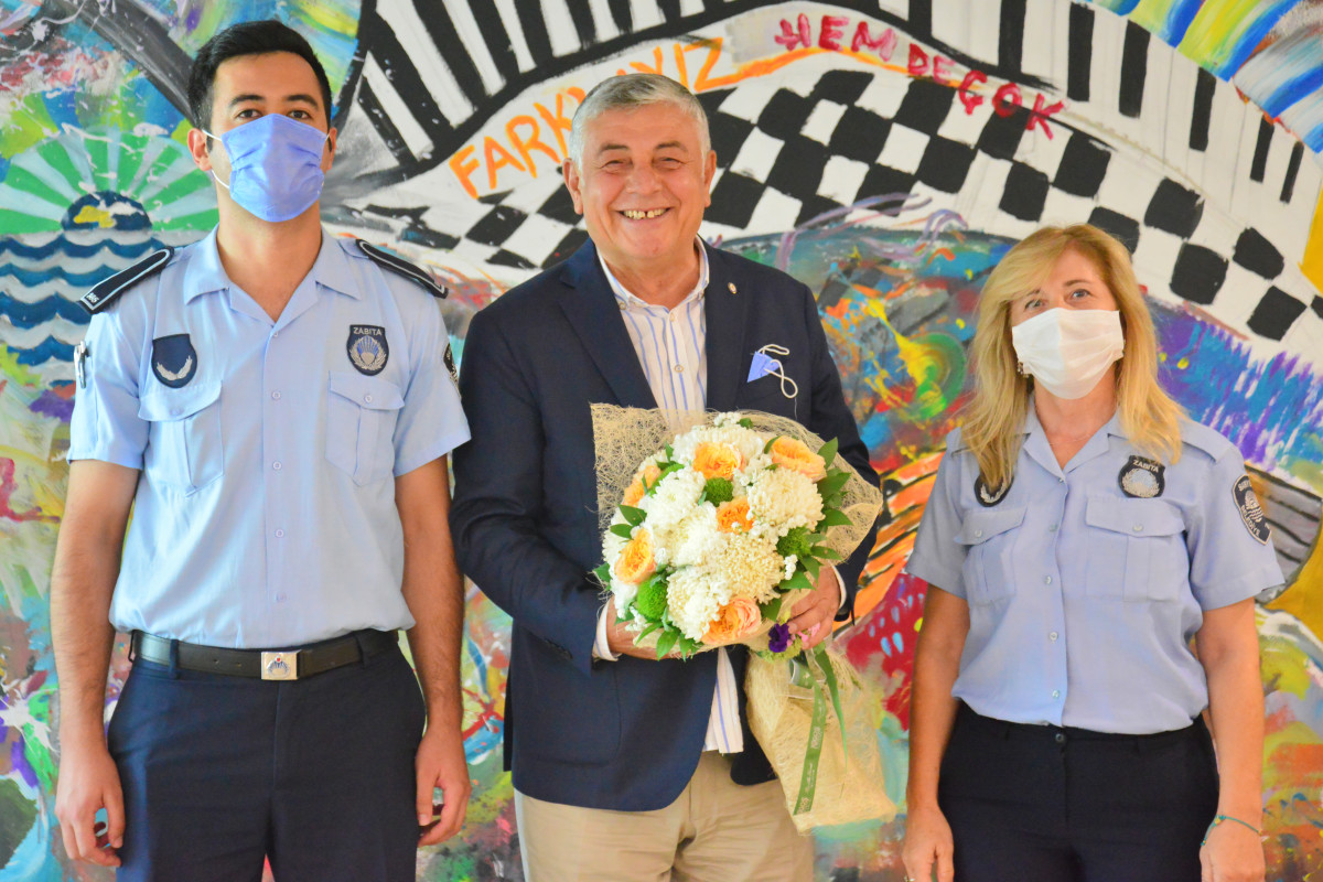 Sarıyer Belediye Başkanı Şükrü Genç, Zabıta Teşkilatı’nın 194. kuruluş yıl dönümü olan “1-7 Eylül Zabıta Haftası” kapsamında Sarıyer Belediyesi’nin alandaki yüzü olan Zabıta Müdürlüğü personelini ziyaret etti. Özellikle pandemi döneminde vatandaşın sağlığı ve güvenliği için gece gündüz demeden çalışan zabıta personeline yapılan ziyarete başkan yardımcıları ve birim müdürleri de katıldı. Sosyal mesafe kurallarına uygun olarak gerçekleşen buluşmada müdürlük personellerine çeşitli hediyeler takdim edilirken, Başkan Genç’e de zabıta personeli tarafından çiçek verildi.