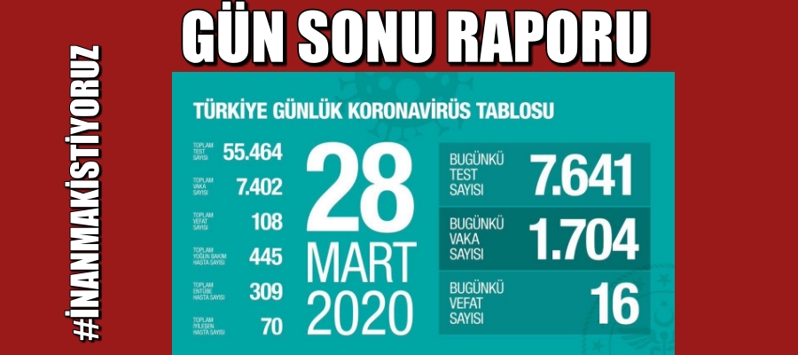 Bugün açıklanan test sayısı 7.641. Bubük ki vaka sayısı 1704,Bugünkü vefat 16 olarak açıklandı.