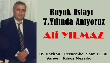 57 yaşında geçirdiği kalp krizi sonucu hayatını kaybeden Sarıyer siyasetinde CHP’nin unutulmaz, onursal ilçe başkanı Ali Yılmaz vefatının yedinci yılında mezarı başında anılacak. 5 Haziran Perşembe günü saat 11.30 da Kilyos Mezarlığı’nda bulunan kabristanı başında Yılmaz için anma töreni yapılacak.