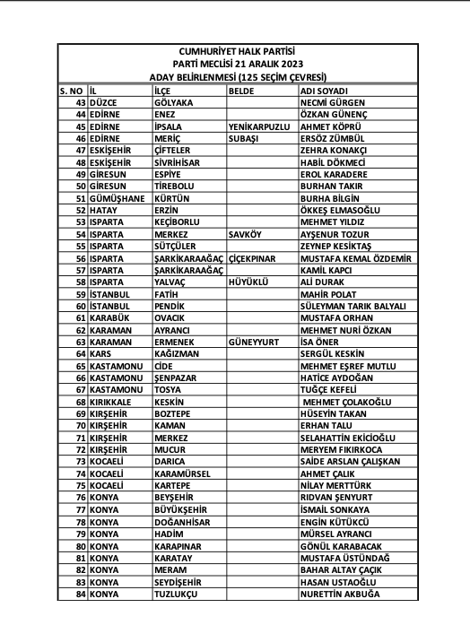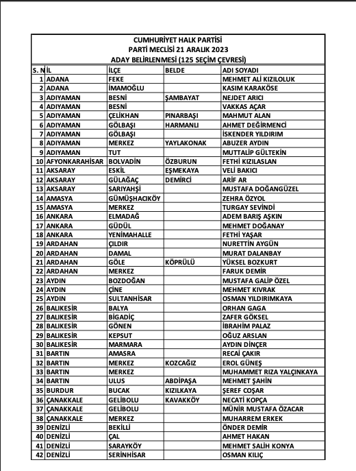 Geçtiğimiz günlerde 227 seçim çevresinde adaylarını açıklayan CHP, bugün yapılan Parti Meclisi toplantısında 3’ü büyükşehir olmak üzere 9 ilin belediye başkan adaylarını açıkladı.