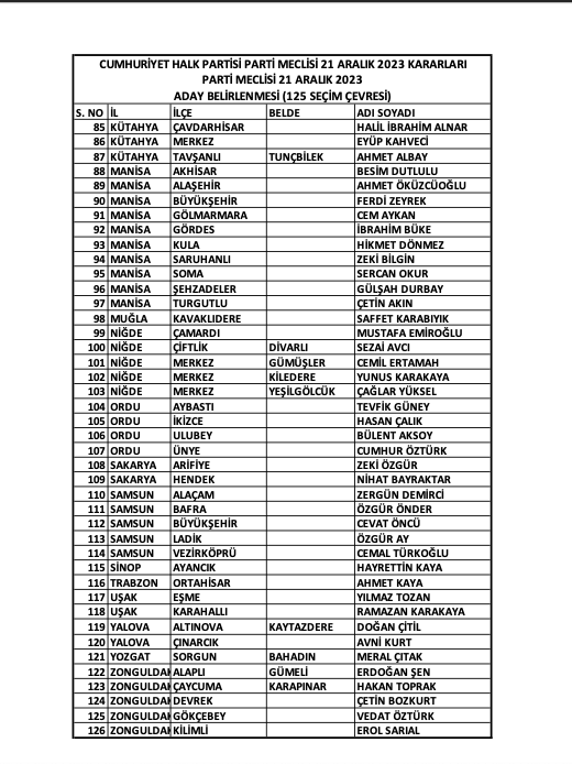 Toplantı sonrası kameraların karşısına geçen CHP Sözcüsü Deniz Yücel’in açıkladığı adaylar şöyle: