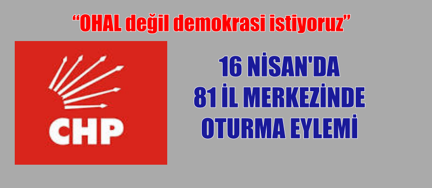 CHP MYK’de 16 Nisan referandumunun yıldönümünde “OHAL değil demokrasi istiyoruz” sloganıyla 81 ilin kent merkezinde saat 12.00’de bir saat oturma eylemi yapılması kararı alındı.