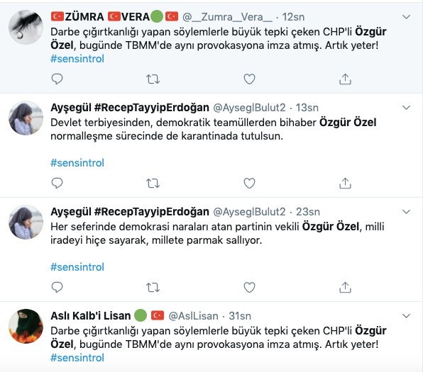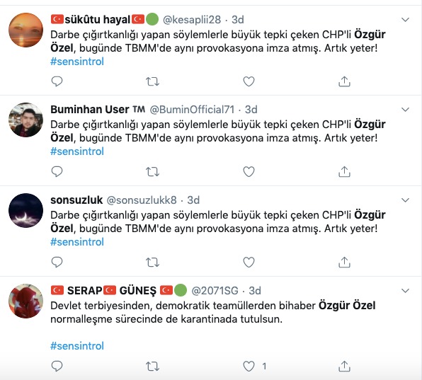 Twitter’da da Aktroller Özgür Özel hakkında aynı ifadelerin olduğu bir linç kampanyası başlattı.