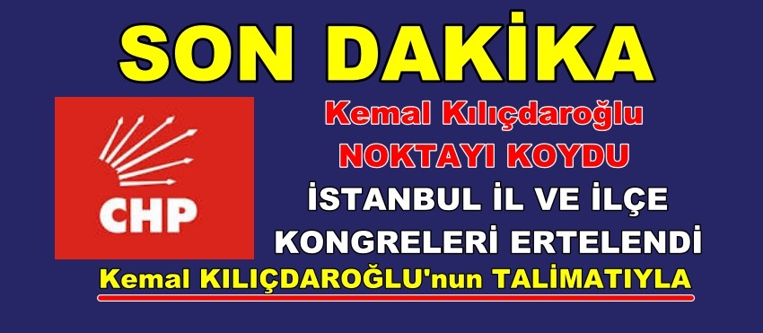 CHP genel Başkanı Kemal Kılıçdaroğluİstanbul’da yaşanan duruma el attı ve CH İstanbul İl Kongresi ve İlçe Kongreleri ileri bir tarihe ertelendi.