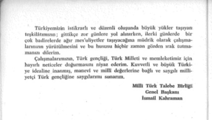 İnternetten kolaylıkla ulaşılabilecek olan MTTB’nin 49’uncu genel kuruluna sunulan ve 48’inci dönemi anlatan faaliyet raporunun birinci sayfasında 48’inci dönemin 15 mart 1967 ile 28 nisan 1969 tarihlerini kapsadığı görülmektedir. Bu raporun 13 ve 14’üncü sayfalarında MTTB genel başkanı sıfatıyla İsmail Kahraman’ın önsöz yazısı vardır.