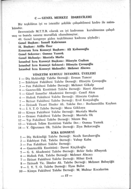 Bu belgelerden kolaylıkla anlaşıldığı üzere, Kanlı Pazar olayının yaşandığı 16 Şubat 1969 tarihinde MTTB’nin Genel Başkanı İsmail Kahramandır.