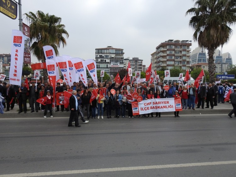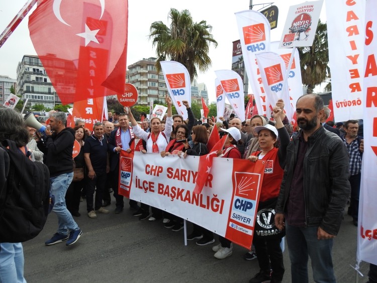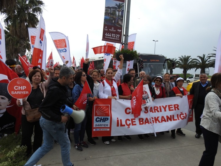 CHP Sarıyer örgütü, mahallelere sabah saatlerinde buluşma noktalarında otobüsler sağlayarak alana taşıma organizasyonu gerçekleştirdi. Saat 10.00 da CHP İstanbul il Başkanlığının toplandığı Kartal ilçesinden 5 kilometrelik yürüyüşle 1 Mayıs 1.30 alanına giriş yaptı.