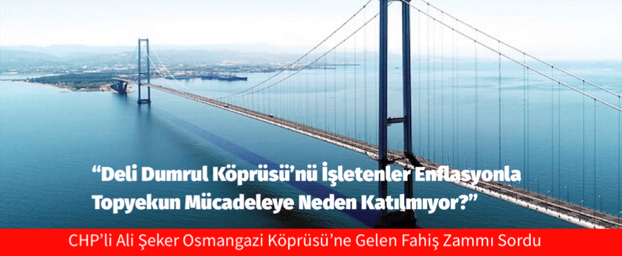 CHP İstanbul Milletvekili Dr. Ali Şeker, Yap-İşlet-Devret modeli ile yapılan Osmangazi Köprüsü’ne gelen %43.6 oranındaki fahiş zamma ilişkin Ulaştırma ve Altyapı Bakanı Mehmet Cahit Turhan’a bir soru önergesi yöneltti. Yapılan bu fahiş zammın gerekçesini soran CHP’li Şeker “Enflasyonla Topyekun Mücadele kapsamında firmalardan ve vatandaşlardan fedakarlık isteyen AKP iktidarı Osmangazi Köprüsü geçiş ücretlerine ilişkin olarak da döviz kuru üzerinden Nurol-Özaltın-Makyol-Astaldi-Yüksel-Göçay Grubu’nun oluşturduğu Otoyol Yatırım ve İşletme AŞ’den bir fedakarlıkta bulunmasını talep etti mi?” dedi.