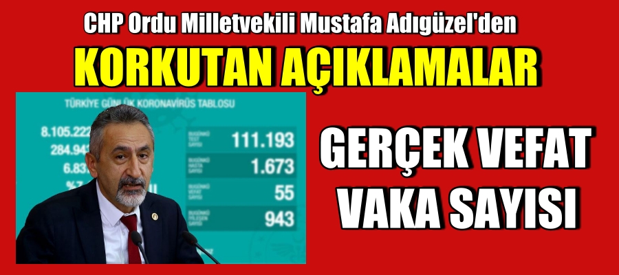CHP Ordu Milletvekili Mustafa Adıgüzel, “Koronavirüsten Türkiye’de gerçek vefat sayısı 23 bindir. Türkiye’nin genelinde vaka sayısı ise 980 bindir” dedi.