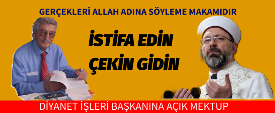 Peki, siz Diyanetin en üstteki insanı olarak Cumhuriyet Bayramından utanıyor musunuz yoksa? O bayramı bayram yapan ATATÜRK’ÜN emri ile kurulan ilk iki kuruluştan ikincisi olan Diyanetin başında siz varsınız. Oraya hiç yakışmadınız Sayın Erbaş! Acaba demeyin sakın gerçek olan bu. Diyanet İşleri Başkanlığı emir alacak yer ya da makam değil. GERÇEKLERİ ALLAH ADINA SÖYLEME MAKAMIDIR. O MAKAMI MAALESEF DOLDURAMIYORSUNUZ. O HALDE YAPACAĞINIZ TEK ŞEY VAR.