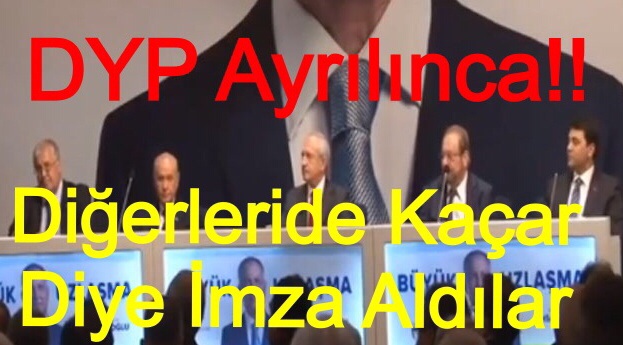 DYP Çatı adayı desteklemeyeceğini açıklamasıyla telaşa düşen MHP- CHP koalisyonu Diğer partilerin destekdebün vazgeçmemesi için imza protokolu yaptılar.