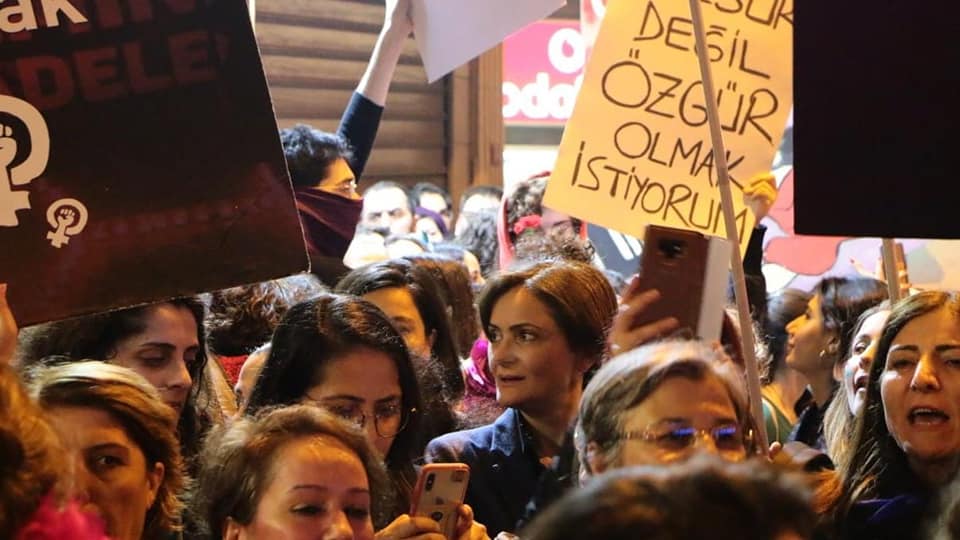 CHP İstanbul İl Başkanı Canan Kaftancıoğlu da kadınlara destek vermek için yürüyüşe katıldı.