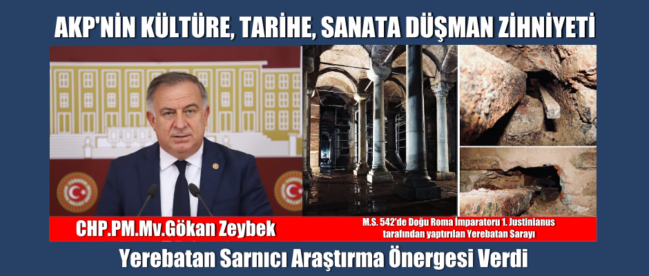 CHP PM Üyesi ve Mv Gökan ZEYBEK, Yerebatan Sarnıcı Araştırma Önergesi Verdi, Doğu Roma İmparatorluğu dönemine uzanan, Unesco Dünya Mirası Listesinde bulunan İstanbul’un ikonik yapılarından olan Yerebatan Sarnıcı’nın keyfi uygulamalar nedeniyle düştüğü içler acısı durumunu ve bu durumun nedenlerinin araştırılması talebini TBMM gündemine taşıdı.