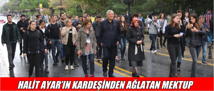 Beyoğlu’nda para isteyen saldırganlar tarafından bıçaklanarak öldürülen 23 yaşındaki Halit Ayar için İTÜ’lü arkadaşları fakülte önünde bir araya geldi. Ailesi ve Sarıyer Belediye Başkanı Şükrü Genç’in de aralarında olduğu sessiz yürüyüşte bir konuşma yaparak abisiyle anılarını anlattığı mektubu okuyan Melike Ayar dinleyenleri ağlattı.