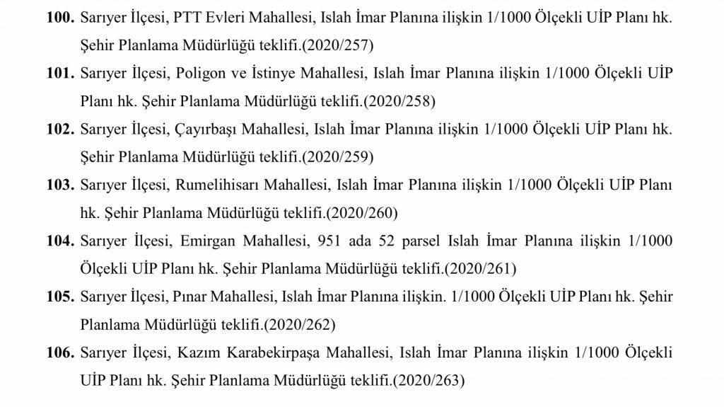 İBB SARIYERLE İLGİLİ GÜNDEM MADDELER