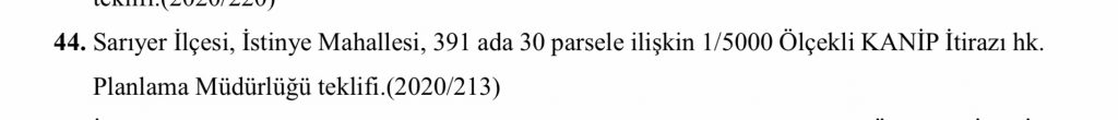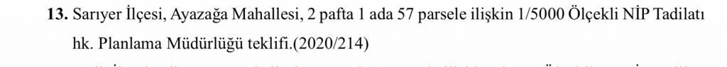 İBB SARIYERLE İLGİLİ GÜNDEM MADDELER