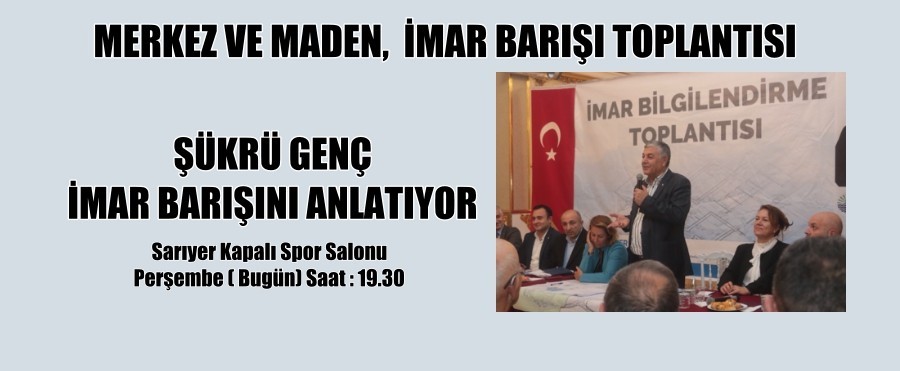 Sarıyer Merkez ve Maden mahaleleri “İmar Barışı” toplantıları bugün Sarıyer Kapalı Spor Salonunda gerçekleştirilecek.