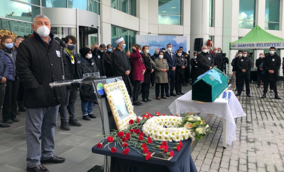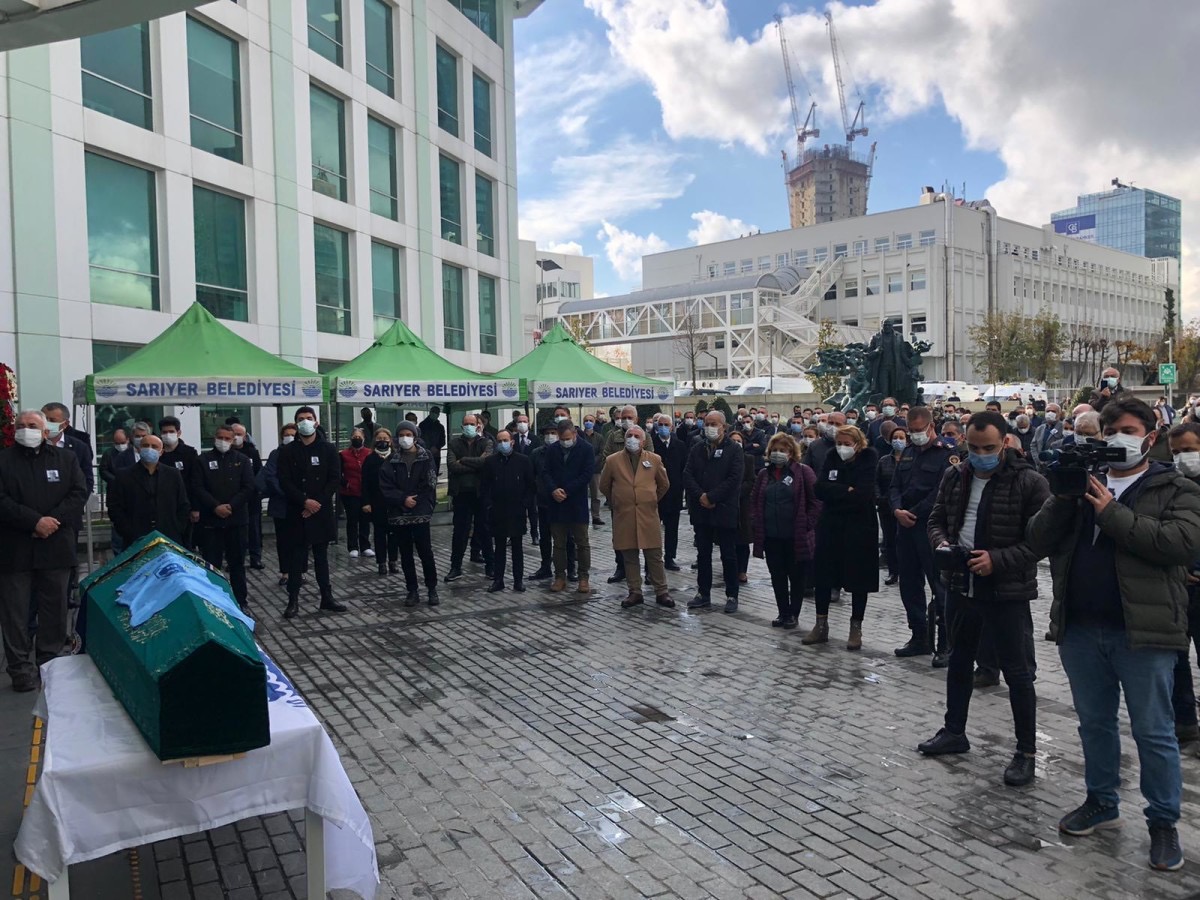 Başkanlık binası önüne getirilen ve Covid19 tedbirleri nedeni ile görevliler tarafından naaşı taşınan Mahmut Ali Kaya’nın cenaze törenide bir dakikalık saygı duruşu ardından Sarıyer Belediye Başkanı Şükrü Genç kürsüde zor anlar yaşadı.