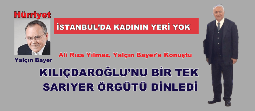 Hürriyet Gazetesi yazarlarından Yalçın Bayer bugünkü köşesinde CHP Sarıyer İlçe Başkanlığı seçimlerinde başkanlığı kazanan Sevim Temizel Yalınkılıç’ta bahsederken. Kemal Kılıçdaroğlu bir tek Sarıyer örgütü dinledi açıklaması yaptı.