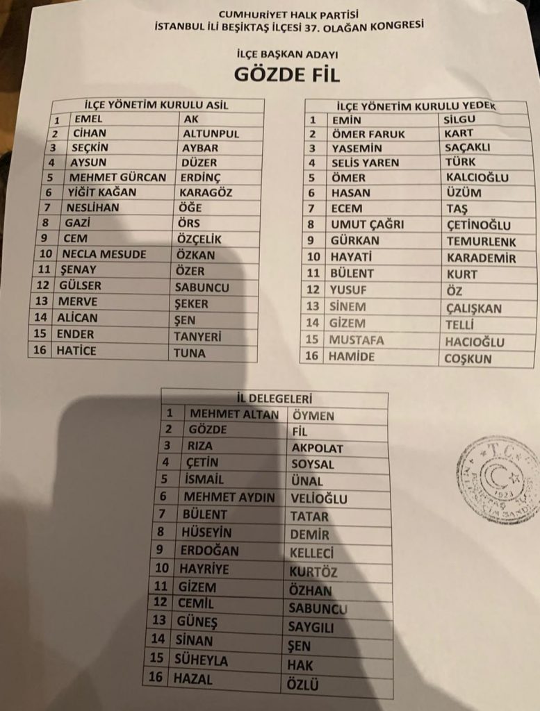 Gözde Fil 203 oy alarak yeniden CHP Beşiktaş’ın İlçe Başkanı seçildi.
