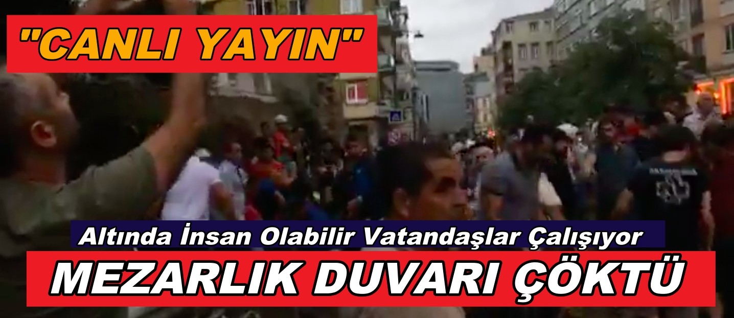 Mezarlığın duvarı yıkıldı altında kalanlanlar olduğu belirtiliyor.