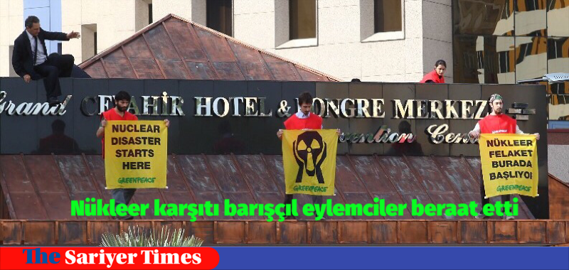 İstanbul Greenpeace’in 8 eylemcisi, 2014 Mayıs ayında gerçekleşen nükleer karşıtı, barışçıl eylem nedeniyle yargılandıkları davadan beraat etti. Dava, Enerji ve Tabii Kaynaklar Bakanlığı’nın İstanbul’da bir otelde düzenlediği nükleer zirve esnasında, nükleer santrallerin Türkiye’ye vereceği zararlar gerekçesiyle yapılan protesto eylemi nedeniyle açılmıştı. 30 Mayıs 2014’te gerçekleşen eylemde aktivistler otelin girişinde 28 m2’lik pankart açarak ‘Nükleer felakfet burada başlıyor’ mesajı verirken, içerde de nükleer karşıtı mesajların yer aldığı kurabiyeler dağıtılmıştı. Eylemcilerin, 2911 sayılı Toplu Gösteri Yürüyüşleri Hakkında Kanunu’n kanuna aykırı gösteri yürüyüşü düzenleme, yönetme ve destek verme suçu işledikleri iddia ediliyor ve haklarında 6 aydan 3 yıla kadar hapis cezası isteniyordu.