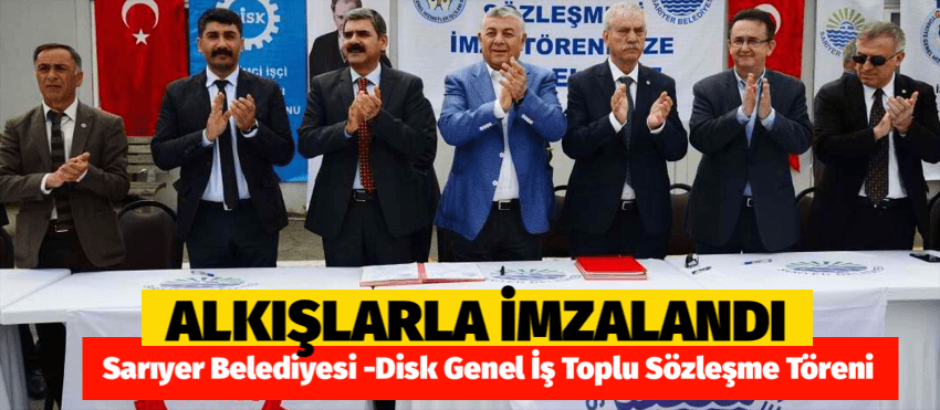 Sarıyer Belediyesi ve DİSK Genel İş Sendikası 2018-2020 yürürlük süreli toplu iş sözleşmesi imzaladı. Ferahevler Merkez Şantiye ’de gerçekleşen imza töreninin açılış konuşmasını yapan İstanbul 1 Nolu Şube Başkanı Mehmet Pehlivan sözleşmenin taraflara hayırlı olmasını diledi. İşçilerin katılımıyla gerçekleşen törende Sarıyer Belediye Başkanı Şükrü Genç, Başkan Yardımcısı Mustafa Tok, DİSK Genel Başkanı Kani Beko ve Genel İş Sendika Başkanı Remzi Çalışkan toplu iş sözleşmesini imzaladı.