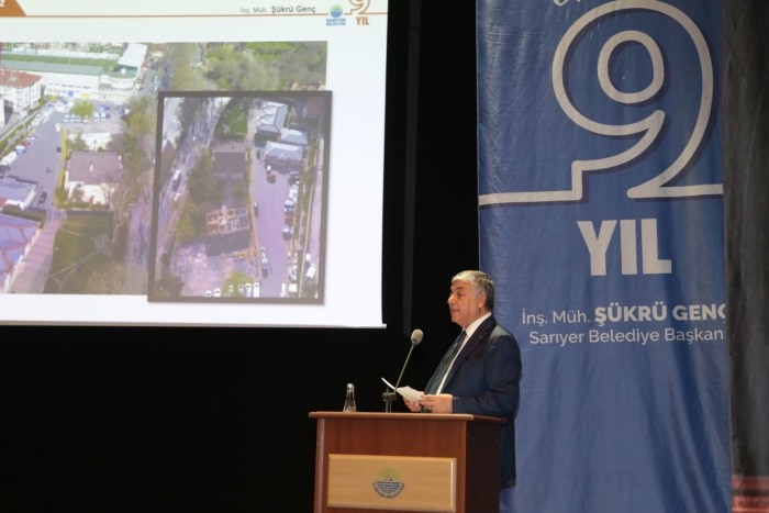 “Daha iyisini nasıl yaparız” ilkesiyle 2009 yılından bugüne sosyal belediyecilik anlayışını ortaya koyduklarını belirterek sözlerine başlayan Sarıyer Belediye Başkanı Şükrü Genç, çok çalışıp, alın teri dökerek büyük bir özveriyle yapılan çalışmaları anlatmanın gururunu yaşadığını belirtti. “ Tek hedefimiz huzurlu bir yaşam temin etmek” diyen Başkan Genç, “Hiç bir zaman yeniden seçilmek amacıyla çalışmadık. Telaşımız, işimizi en iyi, en kaliteli nasıl yapabiliriz oldu. Bu binaların yapılmasında gecesine gündüzlerine katanlara, evde çocuğunu değil burada betonu sarıp sarmalayan arkadaşlarıma tabi ki çok teşekkür ederim. Bu devlet, vatandaşına her zaman babalık yapacak. Biz bu kurumda babalık şefkatini ön planda tuttuk. Sarıyer gibi ayrıcalıklı bir ilçeyi yönetirken farklı bir yönetim anlayışı belirledik. Hızlı karar aldık, etkin ve verimli belediyecilik anlayışı oluşturduk. Belirlediğimiz ilkeleri bir bir yaşama geçirdik. Bunları yaparken planlamayı ve bu doğrultuda çalışmayı ilke edindik” dedi.