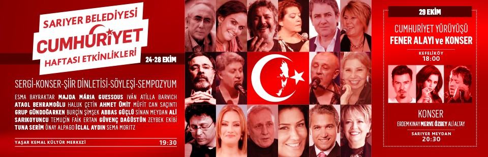 Sarıyer Belediyesi, Cumhuriyetimizin 94. yılını bir hafta sürecek programlarla kutlayacak. Etkinliklerin ilk günü “Cumhuriyet Bize Çok Yakışıyor” sergisiyle başlayacak ardından Majda Maris Guessous ve Ivan Atilla Barvich’in “Türkülerin Kardeşliği” konseriyle devam edecek.