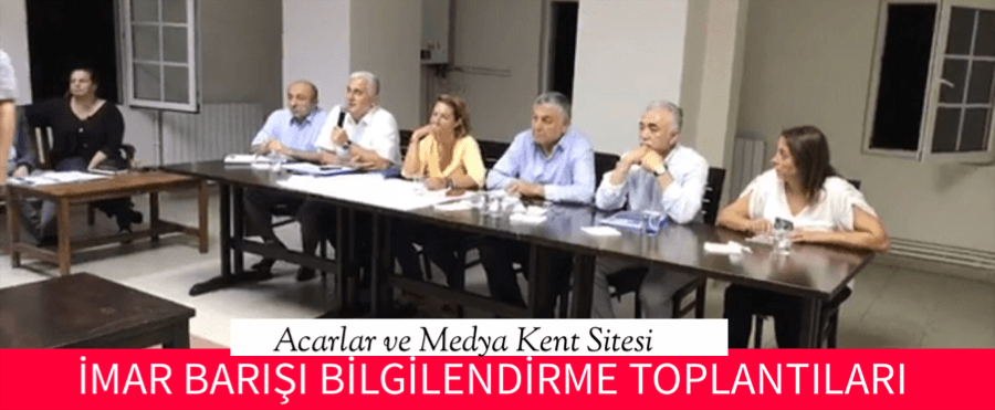 Sarıyer Zekeriyaköy mahallesi Siteler mevkiinde Acarlar Sitesi ve Medya Kent sitesinde “İmar Barışı “ bilgilendirme toplantıları yapıldı. Yoğun katılımda gerçekleşen toplantıda yurttaşların müracaat hakları ve nasıl yararlanacakları, imar durumdan kaynaklanan kaçaklar ve eklerin ne şekilde düzenleneceği, hangi kısımların yararlanacağı, affa giren bölümler, Sitelerin yeşil ve donatı alanlarının ihlali konularında yaşanılan belediye ile ilgili çıkan “İmar Barışı” yasasından nasıl yararlanacakları anlatıldı.