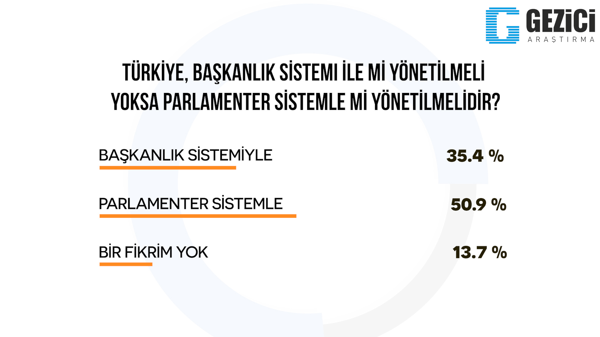 Yurttaşlara sorulan ülke “Başkanlık sistemi mi” yoksa “Parlamenter sistem mi” sorusuna yurttaşların yüzde 50,9’u “Parlamenter sistem”, yüzde 35,4’ü ise “Başkanlık sistemi” yanıtı verdi. Kabinede değişiklik bekleyip beklemediklerinin sorulması üzerine de yüzde 55,9’luk kesim kabine değişikliği yapılması gerektiğini söyledi. Yüzde 28,3 ise mevcut kabine ile devam edilmesi gerektiğini belirtti. Eski Hazine ve Maliye Bakanı Berat Albayrak’ın görevinden istifa etmesinin sorulması üzerine ise katılımcıların yüzde 67,2’si “destekliyorum”, yüzde 14,8’i “desteklemiyorum” dedi. Cumhurbaşkanı Erdoğan’ın bu istifayı kabul etmesini doğru bulanların oranı da yüzde 71,1 oldu.
