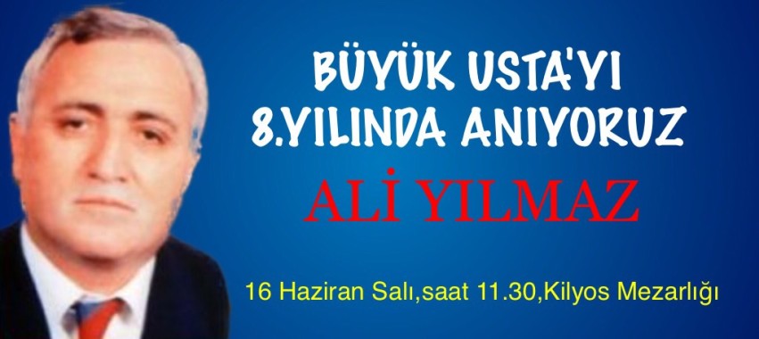 57 yaşında geçirdiği kalp krizi sonucu hayatını kaybeden Sarıyer siyasetinde CHP’nin unutulmaz, onursal ilçe başkanı Ali Yılmaz vefatının yedinci yılında mezarı başında anılacak. 16 Haziran Salı günü saat 11.30 da Kilyos Mezarlığı’nda bulunan kabristanı başında Yılmaz için anma töreni yapılacak.