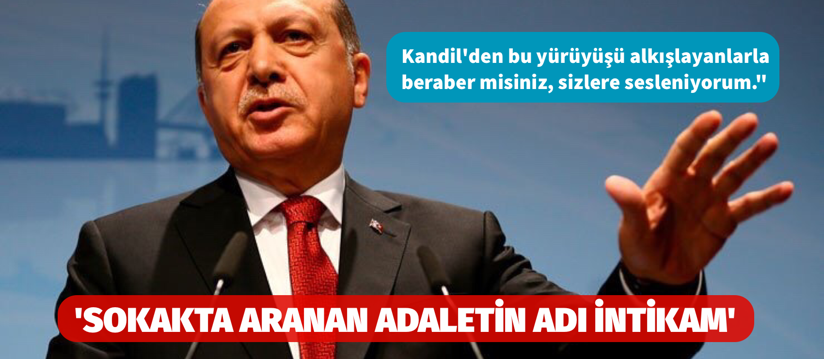 Cumhuriyet Halk Partisi’nin söylediklerinden mutlu olanlar FETÖ’cülerdir, PKK’lılardır. Ben buradan Cumhuriyet Halk Partisi’ne oy veren vatandaşlarıma sesleniyorum: Kandil’den bu yürüyüşü alkışlayanlarla beraber misiniz, sizlere sesleniyorum.”