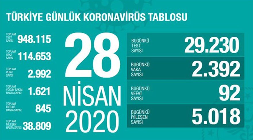 Böylece Türkiye’deki toplam vaka sayısı 114 bin 653’e toplam vefat sayısı ise 2 bin 992’ye yükseldi.