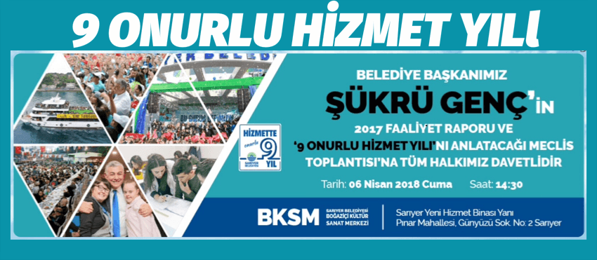 2017 faaliyet raporu Sarıyer Belediye Başkanı Şükrü Genç tarafından anlatılacak olan toplantıya tüm halkın davetli olduğu bildirildi.