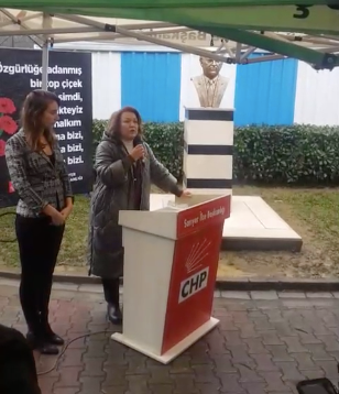 CHP İlçe Başkanı Sevim Yalınkılıç törende yapmış olduğu konuşmasında : “Cesaret ve ilkelerinden asla taviz vermeyen, aydınlığı ile karanlıkların üstüne canı pahasına yürüyen Uğur Mumcu’nun katledilişinin üzerinden 28 yıl geçti. Uğur Mumcu tam bağımsız, laik, demokrat, sosyal hukuk devleti olmasını istediği Türkiye Cumhuriyetine sahip çıkan yazılar ile araştırmacı gazeteciliğin öncülerinden, dürüst gerçek bir yurtseverdi. Yılın ilk ayları hüzündür bizim için yokluklarını her daim hissettiğimiz demokrasiye , özgürlüğe çağdaş topluma, laik cumhuriyete inanmış çok sayıda yurttaşımız, Muammer Aksoy. Bahriye Uçok, Abdi İpekçi, Gaffar Okan, İsmail Cem, Aydın Güven Gürkan, Ahmet Taner Kışlalı ve Kamer Genç gibi değerlerimizin katledildiği yaşamını yitirdiği yerdir. O yüzden bizler bu haftayı Adalet ve Demokrasi haftası anarız. Faillerimizin yakalanması namus borcumuzdur dediler asıl failler hala karanlıkta. Hesabı sorulmayan her acının, örtbas edile her türlü haksızlığın, adaletin temsil edilmediği, hukukun katledildiği her anın karşısında suskun kalmayacağız, bizler Cumhuriyet kazanımlarını halkımıza yeniden kazandırmak için demokratik mücadelemize devam edeceğiz.”