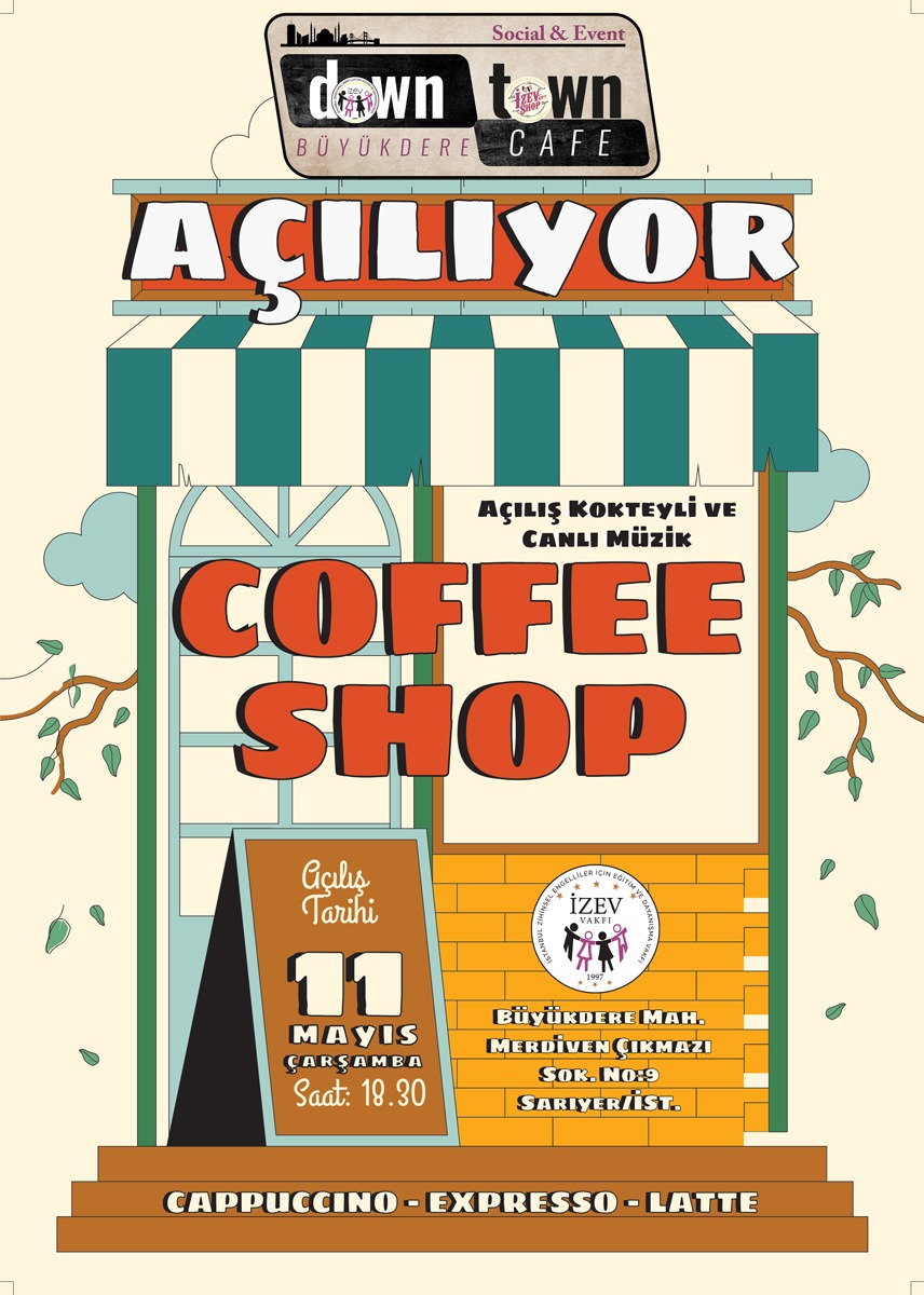 11 faaliyet alanımızdan biri olan istihdam odaklı projemiz Down Town Cafe, Büyükdere’nin açılışına davet ediyoruz. Down Town Cafe, Sarıyer’in tarihi dokusunun canlı bir şekilde yaşandığı Büyükdere Mahallesi’nde, her yaştan İstanbullunun haftanın 7 günü, günün her saati keyifle vakit geçirebileceği, özel kahvelerimiz, sandviç ve tatlılarımızı deneyimleyebileceği, zihin farklı kişilerle bir araya gelebileceği ve sivil topluma katkı sağlayabileceği 4 mevsim bir cafe ve projedir.