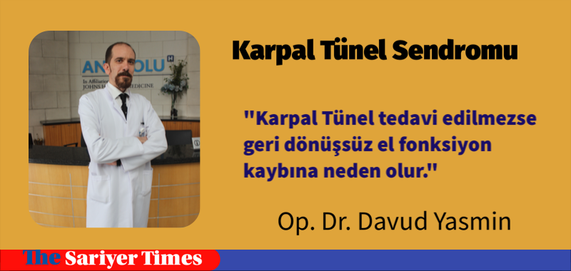 Bu rahatsızlığın ilk başlangıç şeklinin özellikle hanımlarda hamur yoğurmak, elde çamaşır yıkamak, el işi yaparken veya bilgisayar tuşlarına basarken yani el bileğini kullanarak yapılan hareketli işlerde uyuşukluğun meydana gelmesi ve özellikle ilk üç parmakta elektrik çarpar gibi bir elektriklenmenin hissedilmesi olduğunu vurgulayan Anadolu Sağlık Merkezi Ortopedi ve Travmatoloji Uzmanı Op. Dr. Davud Yasmin “Karpal Tünel Sendromu’nda hastalar genellikle geceleri ağrıların artmasından ve yanma tarzı bir acının kişiyi uykudan uyandıracak kadar fazla olmasından şikâyet ederler. Tabii ki bu durum hastalığın ilerlemesi ile doğru orantılı olarak farklılık arz eder” şeklinde konuştu.