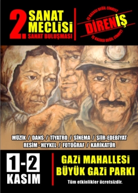 imageSanat Meclisi 2. Sanat Buluşması 01-02 Kasım tarihlerinde Gazi Mahallesi’nde gerçekleşiyor. Geçtiğimiz sene ilkini düzenlediğimiz Sanat Buluşması’nın bu sene ikincisini gerçekleştiriyoruz. Tüm sanat disiplinlerini biraraya getirip; sanatımızı halkla, halkımızı sanatımızla buluşturma hedefi ile çıkmıştık yola. Bize dayatılan dar sanat mekanlarına karşı Gazi Mahallesi’nin yoksul sokaklarını, mahallelerimizin parklarını seçtik mekan olarak.