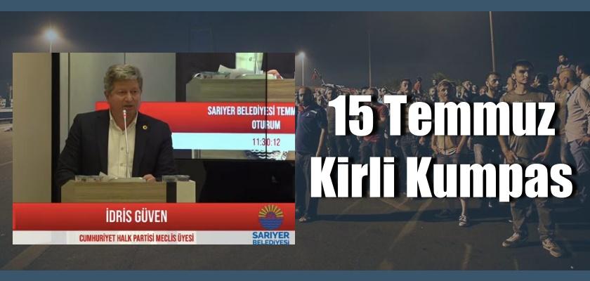 Sarıyer Belediyesi Temmuz Meclisi 2. oturumunda CHP Meclis Üyesi İdris Güven 15 Temmuz darbe girişimi hakkında kürsüden konuştu. İdris Güven 15 Temmuz gibi hain kalkışmaları bir daha asla yaşamayacağız dedi.