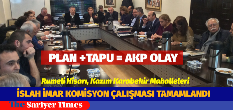 06.Şubat.2107 Sarıyer Belediye Meclisinde 5.6 maddeleri olarak gelen ve komisyona havale edilen Kazım Karabekir ve Rumeli Hisarı mahallesi İslah İmar planları için mahalle dernekleri, mahalle muhtarı ve mahalle sakinleri ile buluşarak Sarıyer Belediyesi Başkanlık binasında planları harita üzerinden inceleyerek görüş birliği vardılar ve Planlar yarın yapılacak olan Sarıyer Belediye Meclisinde kabul edilerek İBB Meclisinin onayına sunulacak.