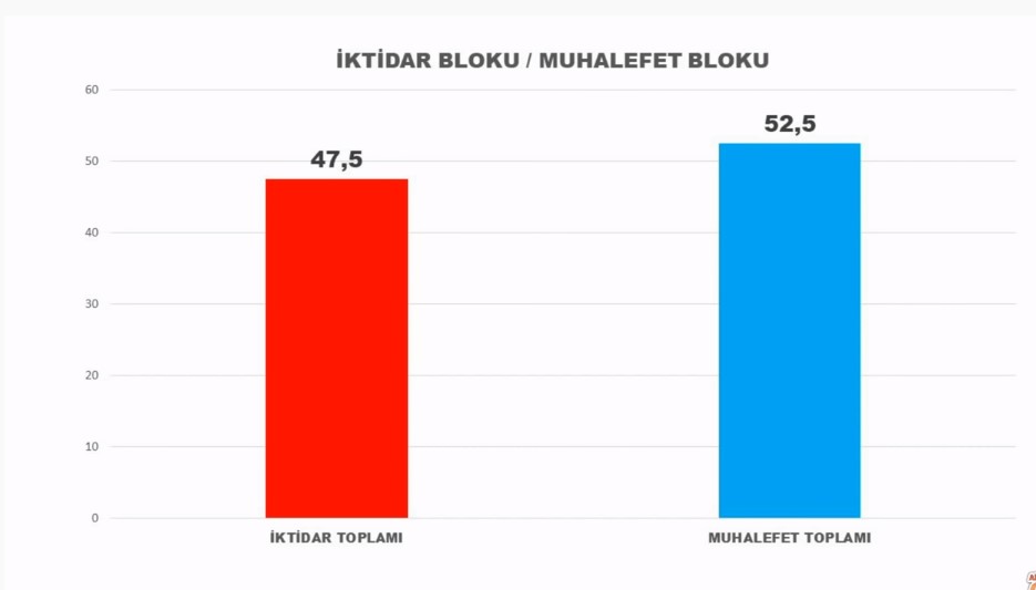 9 anketin ortalamasının kararsızlar dağıtıldığında toplamda 52,5 oy alan Muhalefet Bloku’nun 47,5 alan İktidar Bloku’nu geçtiği görüldü.