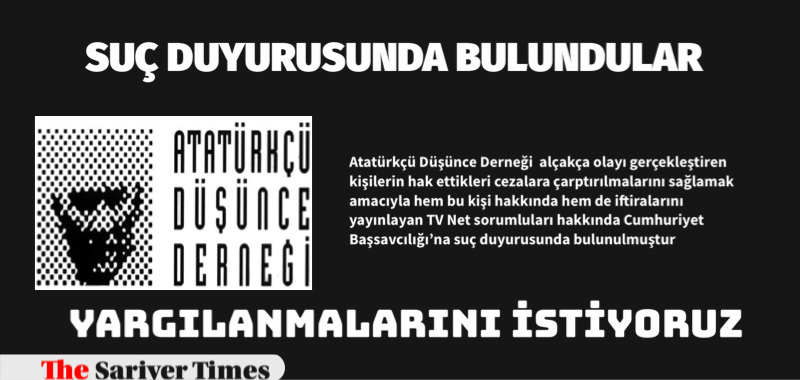 Atatürkçü Düşünce Derneği Yazılı basın açıklamasında, TVNet kanalında Derin Tarih propramında Mustafa Kemal Atatürk’e sözlü hakaretlerde bukunan şahislara karşı tepkilerini açıkladı ve Cumhuriyet Başsavcılığına suç durusunda bulundu.