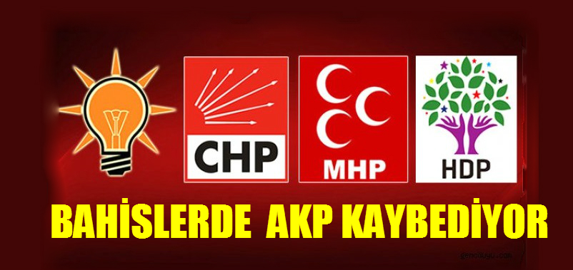 Uluslararası bahis siteleri, 1 Kasım’da Türkiye ’de gerçekleştirilecek Milletvekili Genel Seçimi için “seçim bahisleri” açtı. “Türkiye Genel Seçimi” adı altındaki bahislerde lider fotoğraflarıyla birlikte AKP , CHP , HDP ve MHP ’nin alabileceği oy oranlarıyla ilgili yüzde aralıkları yer alıyor. Avrupa kaynaklı bir sitede AKP’ye yüzde 38-40.5 arasında 2.25, yüzde 40.6- 42.9 arasında 2.60 oranı veriliyor.