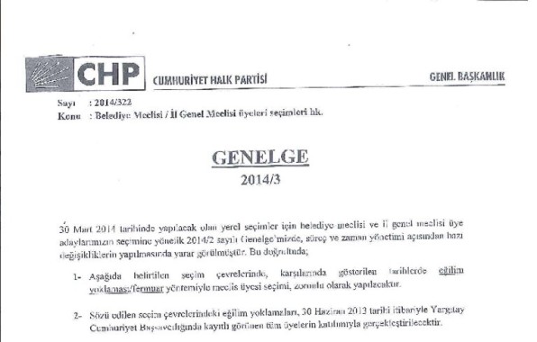 CHP 30 Mart 2014 tarihinde yapılacak yerel seçimlere yönelik belediye başkan adaylarının belirlenmesi konusunda yayınladığı FERMUAR genelgesiyle son noktayı koydu.